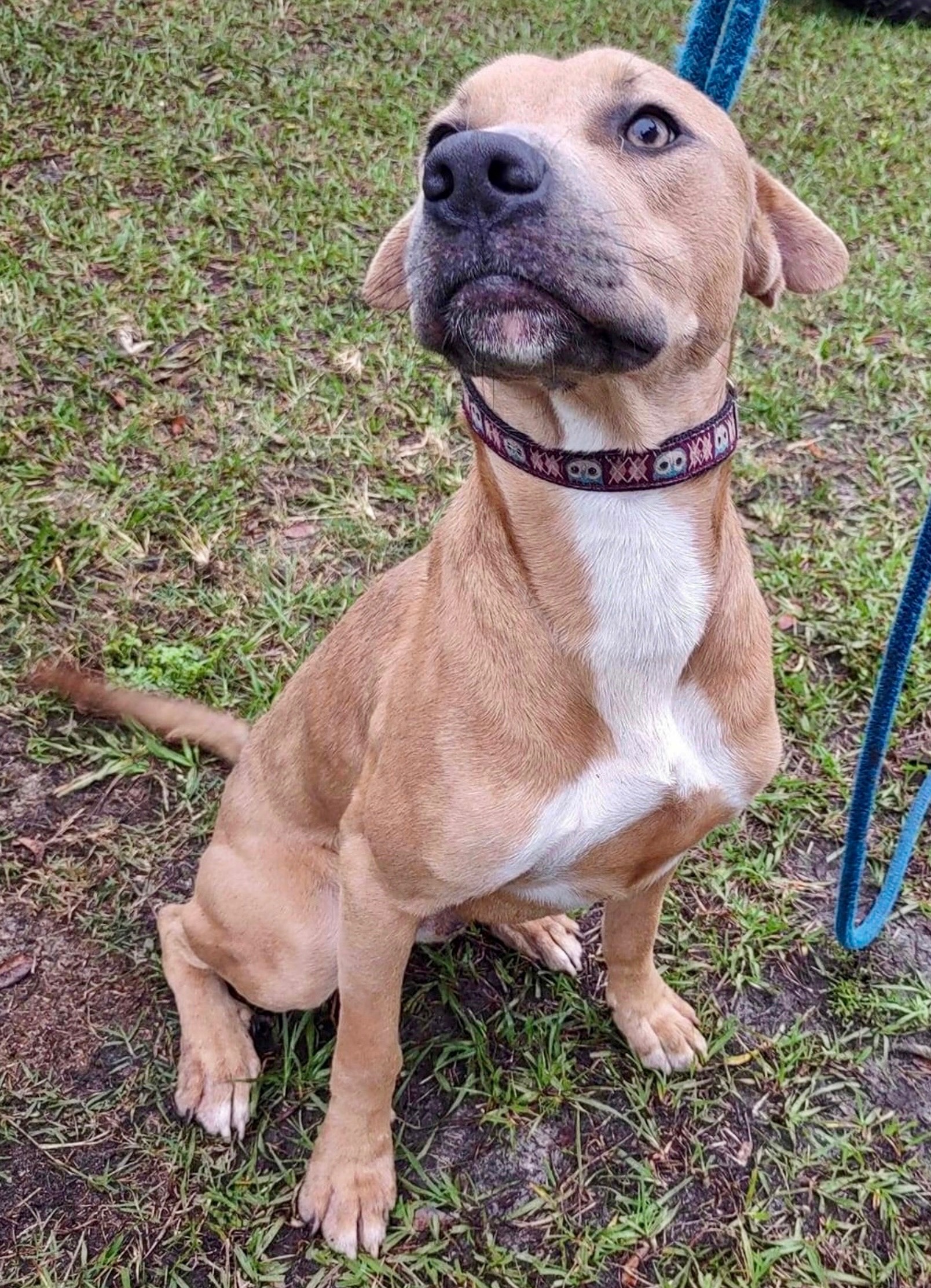 Comments: White markings on chest and black at end of his snout. He's skinny so he's been lost for several days at least.