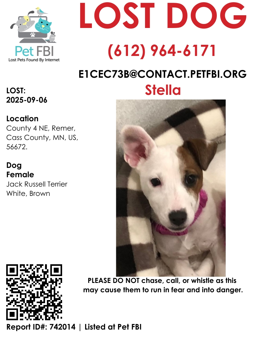 Pet FBI Report for a Lost Dog in MN, 56672