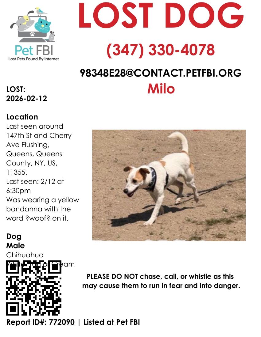 Pet FBI Report for a Lost Dog in NY, 11355