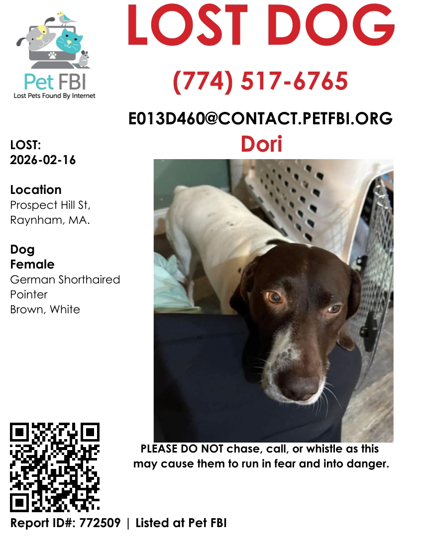 Pet FBI Report for a Lost Dog in MA, 02767
