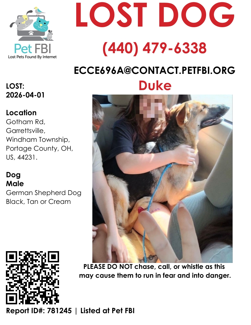 Pet FBI Report for a Lost Dog in OH, 44231